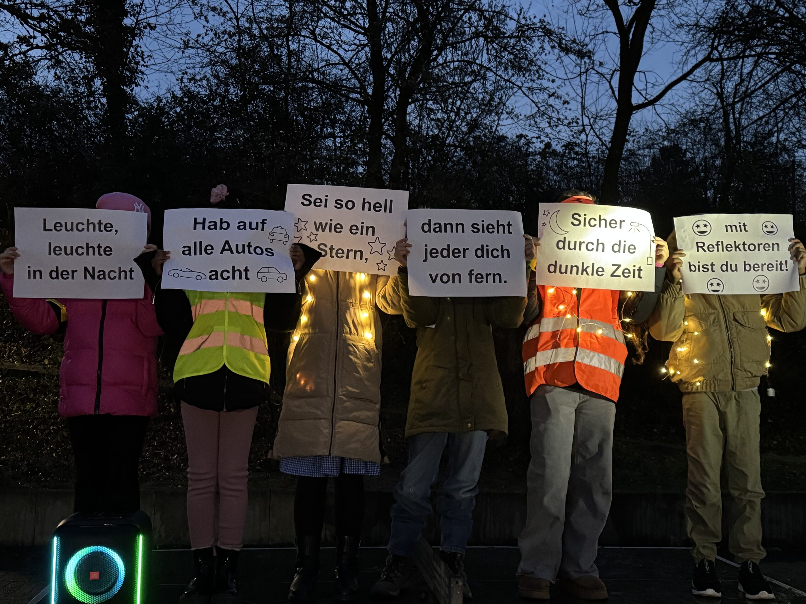 So begann das Lernen schon vor dem Unterricht, denn die Kinder erkannten schnell: Wer gut beleuchtet ist, wird besser gesehen. Unterstützt wurde diese Botschaft durch zwei Lieder mit eingängigen Refrains, die gemeinsam gesungen wurden.